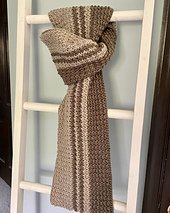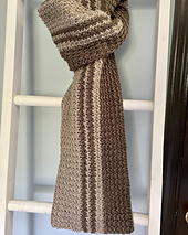 **Construction**: The crochet men’s scarf is worked lengthwise, creating a striped effect with the surface texture that pairs nicely with the stripes worked with the color changes.
