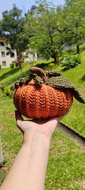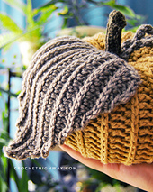 You'll first work the body of the pumpkin flat, then you'll join the two short edges together to form a tube. Easy-peasy! The leaf design will pique your interest with its clever short-row-like construction, and the tendrils and stem will bring a realistic touch.