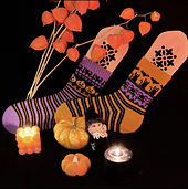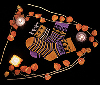 It includes 3 different jacquard charts for three different pairs of socks in the Halloween spirit.