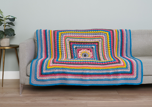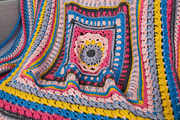 A delicious stitch sampler that starts from the middle of the blanket. There are many variations of criss cross stitches used in this blanket.