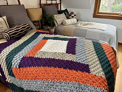 The blanket is 63″ x 63″ square using 5.5 mm I/9 Hook.