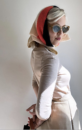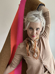 The SoHo Square is a bold and whimsical design with a seemingly straightforward geometry. While not everyone loves math, the scale of the graphics was created algebraically and the proportions are anything but random. Its magic is in how it dances the colors on your body. The SoHo Square is a pure pleasure project—from picking your color story, to the generosity of a garter knit, to its veins of moving color—it is like wearing your favorite song. The SoHo Square comes in three sizes: a wrap, a scarf, and a bandana called, The Wink. Choose your size and play along: whether you wrap yourself in abundant color or flirt with an insouciant Wink.