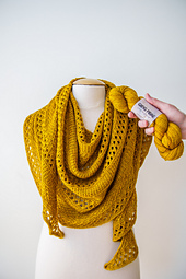 *Select one color of fingering weight yarn to knit this textured semi-circular shawl. The stitch patterns include a broken ribbed stitch, daisy stitch, and an intricate eyelet pattern. Garter stitch sections divide the textured motifs for a mix of engaging stitch patterns with mindless knit rows between them. I-cord edges frame the shape of this seamless shawl. Try a soft and silky yarn like Qing Fibre’s Yak Singles, a beautiful blend of merino, yak, and silk. You can also knit this lightweight shawl with hand dyed merino yarns or allow the textures to shine with lofty wool yarns like West Wool Bicycle.*