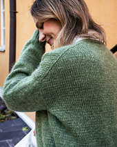 400 (450, 475, 500) (525, 550, 600) (625, 650) g of Sandnes Garn Sunday (100% Merino Wool - 235 m / 257 yds / 50 g) in color 9062 Olivegreen together with 125 (125, 150, 150) (175, 175, 200) (200, 225) g Gepard Kid Seta (70% Super Kid mohair, 30 % Shappe Silk - 210 m / 230 yds/ 25 g) in color 820.