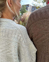 The Storm Sweater Man is worked from the top down in a texture pattern. First, the back yoke is worked and shaped using short rows to form the slope of the shoulders. After this, stitches are picked up and knitted for each shoulder, which are then joined to form the front yoke. The front and back yoke are joined to form the body, which is worked straight down in the round. The sleeves are worked in the round on double-pointed needles or on a circular needle using the Magic Loop technique. A rib edge is worked along the neck, folded double, and knitted down. The Storm Sweater Man is worked in a texture pattern which has four different segments.
