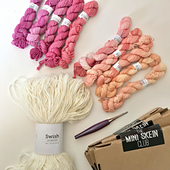 This blanket’s size makes it an ideal baby blanket, pram blanket, pet blanket, lap blanket, or a decorative throw. The finished dimensions of the blanket will be approximately 70cm X 85cm (27.5in X 33.5in) using 24 mini skeins, or 70cm X 88cm (27.5in X 34.5in) using 25 mini skeins