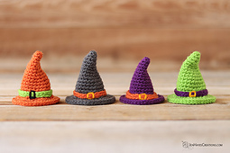 Best yet, consider grabbing the Halloween Ornaments, Set 1 ebook. It includes the Small Witch Hat that fits perfectly with the other four designs in the ebook; a pumpkin, a ghost, an eyeball, and a bat.