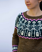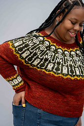Not any more! The Boneyard Sweethearts skeletons have joined hands to prepare you for winter! Skeletons aren’t just for Halloween. These friendly skeletons are ready to celebrate through the coldest months of the year. A playful twist on the [Boneyard Sweethearts](https://www.ravelry.com/patterns/library/boneyard-sweethearts) hat patten, this humerus sweater will have you smiling as each arm bone, leg bone, and funny bone appear.