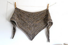 A unisex triangular kerchief/shawl knitted in DK weight yarn.