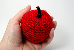 Here’s a realistic amigurumi apple: it’s not just a ball with a stalk attached, it’s actually the shape and size of a real apple!