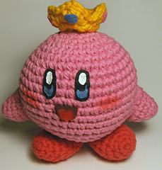 In honour of the recent release of Kirby's epic yarn, here's a pattern for an epic Kirby, made of yarn. I was going to make a bunch of different Super Smash Brothers hats for him, but got distracted and let him languish. Kirby was not amused and demanded to be published immediately, so here he is! Patterns for a Super Mario Kirby hat and a Peach Kirby crown are included. I may come up with some more hats and post in the future.