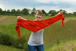 "Автостопщик" - узкая, слегка асимметричная, удлинённая треугольная шаль, которая легко ляжет в несколько оборотов вокруг шеи. На одной из коротких сторон в процессе вязания образуется интересный зубчатый край. Петли считать не нужно! Работу можно завершить в любой момент, связав маленький галстук, небольшую шальку или большую шаль.