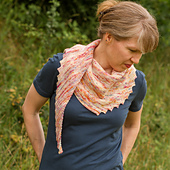 Hitchhiker c’est un petit châle triangulaire peu pronfond, légèrement asymétrique, que vous pouvez enrouler autour de votre cou plusieurs fois. Les pointes sont suffisamment longues pour être nouées. La bordure en dents de scie se construit tout simplement au cours du tricot et donne à ce châle son allure originale.