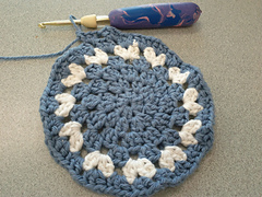 Working from the center, complete 10 rounds in pattern then finish off.
