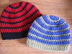 Rose/gray and browm ombre beanies made from scraps from stash. Varied with finishing rounds of single crochet, reverse single crochet or half double crochet rib.