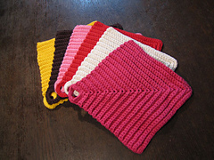 Je Topflappen etwa 50 g Baumwollgarn (z.B. Schulgarn, LL 87 m/50 g)
