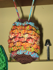 25 Jan 2013: If the bag is worked from the “outside” (holding the project so that the opening of the bag is behind the hands), the petals will lie down as shown. If the bag is worked from the “inside” (holding the project so that the opening of the bag is between you and and your hands), the petals will stand up and seem “upside down”. Both ways look cute, but please be aware that it does make a difference!