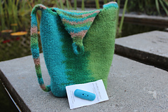 A unique design for its combination of shape, felting, and pooling techniques, Triangulaire is a purse designed for worsted weight wool yarns. Beginning with the base triangle, the pattern moves on to tubular sides before repeating with more triangles for its flap and straps. Triangulaire is an excellent first pattern to learn the color pooling technique, as the felting masks uneven work. This 7 page pattern includes written instructions, charts and schematics.