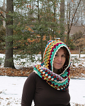 Ever wanted to wear your granny stripes? This colorful hood with cowl is designed to brighten any winter wardrobe...stay warm, look fab!