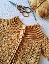 This classic baby cardigan is the perfect layering piece; it goes with just about anything! Design features ribbing at yoke, cuffs and bottom edge. The cardigan body is done with a unique texture to really make the ribbed details stand out.