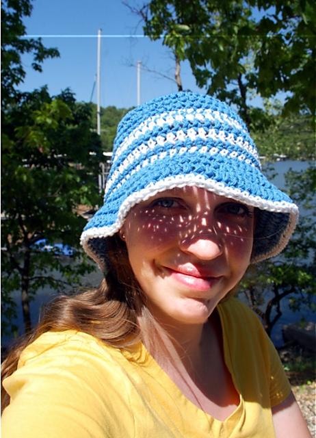 When you have a last-minute opportunity to go to the lake for the weekend, what do you do? Well, if you’re me you grab two balls of cotton and crochet a hat on the drive! Soft and shady with some nautical stripes, this bucket-style sunhat is simple and quick so you can get it finished and get on with your vacation!