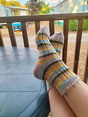 I call this pattern Time Traveler not just because of the colorway I used when designing it, but also because the socks knit up so fast you'll feel like someone's been messing with your time and relative dimension in space!