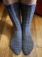 This toe-up sock uses simple (yet interesting) variegated ribbing and a Fleegle heel for a project that flies right off your needles and fits spectacularly. Knit it in your favorite self-striping, self-patterning, pooling, or variegated yarn.