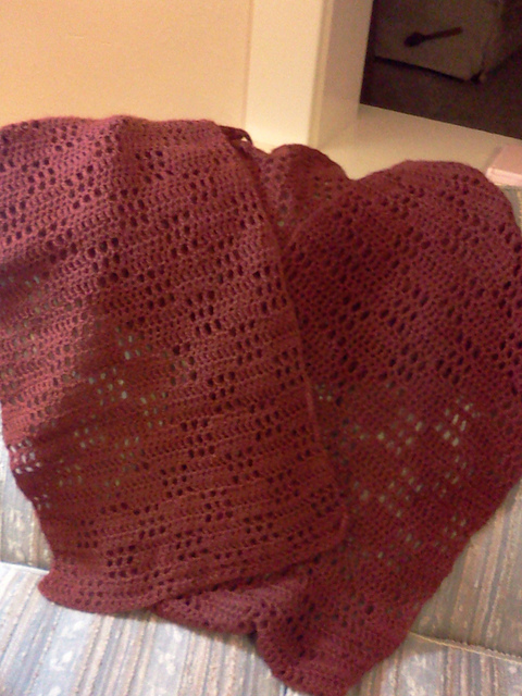 From the book: An excellent gift for someone in need, this "checkers" filet crochet shawl is a lovely reminder of the fun things in life-- like visiting with a good friend over a favorite board game.