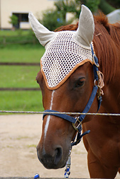 Sommer ist Insektenzeit. Die beliebten Fliegenhäubchen schützen empfindliche Pferdeohren vor Insekten.