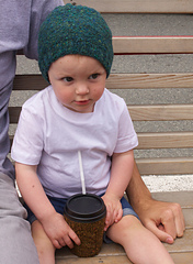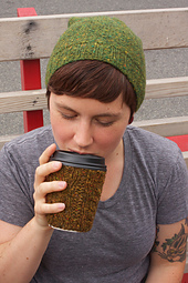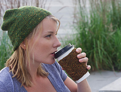 *When I meet up with friends we inevitably end up at one of about a million coffee shops, laughing and sipping (and often knitting). This coffee cozy fits with the bohemian vibe of Main Street. It is a great project for using up odds and ends, and makes a cute gift for your coffee companions!*