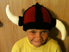 The hat can easily be customized with different colors, the horns attached higher or lower or turned upside down, lengthened or shortened, etc. I used Bernat Super Value to create the pattern, but any medium 4 size yarn will work out just fine as long as the gauge is correct.