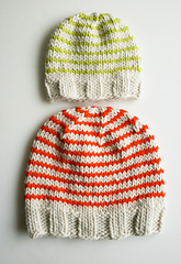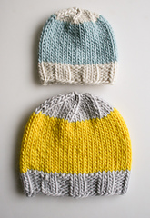 This pattern includes one basic hat pattern (in five sizes), and four different ideas for stripes and color blocks. You can knit any size hat in any color design, or of course, it’s always fun to come up with your own color story!