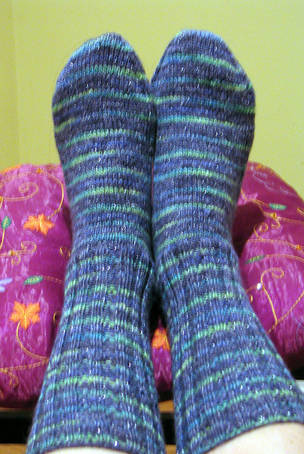 DK/Sport - 5.5 stitches per inch on size 5 needles. 350 yards required for pattern.