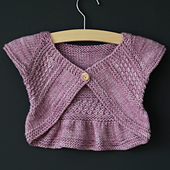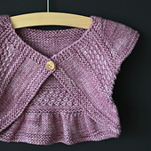 **Un adorable boléro qui se tricote en un clin d'oeil et nécessite très peu de laine. Ce boléro est tricoté en partant du haut jusqu'aux dessous de bras. Les manchons raglans sont rabattus, puis on tricote les mailles du dos avec les mailles relevées le long de chaque raglan du devant, afin de former le bas du corps en une seule pièce.**