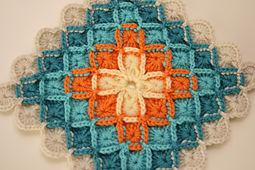 Crocheted in the round from the center out. No gauge or yardage given.