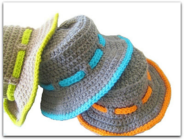 The pattern includes sizes from newborn to 10 years and is in Standard American Terms. The hats are worked using worsted weight yarn ( size 4 medium) and hook G ( 4.25mm) for size 6-12 months and hook H ( 5mm) for all the other sizes. The bands use hook F for 0-3 months and G for all the other sizes. The hat is quick to work up with an H hook.