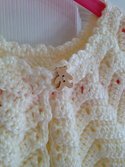 I found a similar pattern on Ravelry but the size is for infants to 6 months. So I changed the hook size and gauge and make it for a 1-year-old. I also modified the length of the sleeves, the pattern on the neck and crochet technique. This cardigan is very easy to make and it's done in one day! Enjoy!
