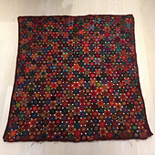 The edges are filled in with a half flower motif, and the whole blanket is then edged with clusters of dtr’s.
