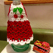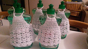 Dress up your liquid dish soap bottles so they can stand sentinel at sink side. This cute little apron fits at least two sizes of dish soap bottles to keep your soap looking pretty enough to stay out.