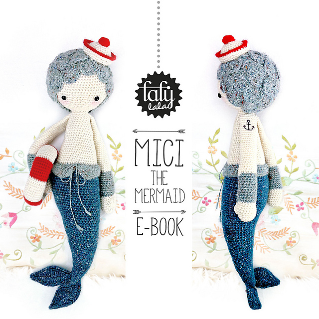 MICI is approximately 35 cm 13,8 inches tall. She is made out of cosy 4 ply sockwool, cotton wool and love. For your little mermaid you can use every yarn you prefer - she’s getting taller or smaller but she’s always really cute!