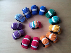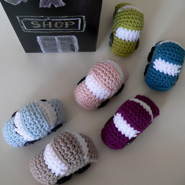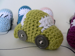 You can customize the tiny crochet cars in any way you fancy. You could add wipers, numberplates, a little bumper, maybe? Or what about racing stripes (thanx Connie!) or little cartoon faces?