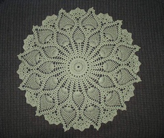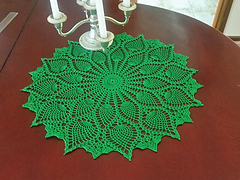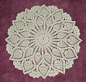A doily or centerpiece with a pineapple design which can be made easily and quickly. It makes a great housewarming gift too, made in the colors you love. This is an advanced beginner pattern with simple stitches. Depending on your thread, it will be 17 or 18 or even 19 inches across.