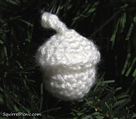 Crochet your acorns in holiday colors or all white and hang them on your tree or display them in a decorative bowl on your coffee table.