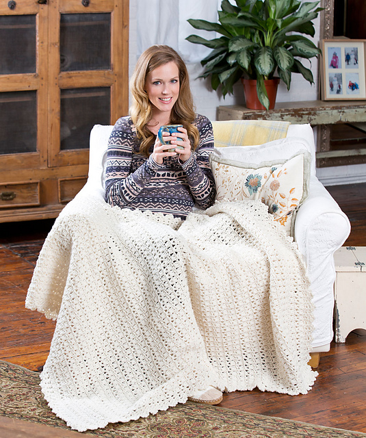 >Who cares what the weather is outside when you have a nice cosy throw to keep you warm? This easy crochet pattern is created with just one colour, so you can choose whatever shade yarn you desire for your surroundings.