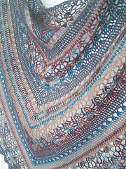 Here is additional info to make a shawl between the Small size and the Large size. I call it "The Misty Mountains Jump" because it allows you to jump from a row between Row 41 and Row 55 directly to the Final Edging Row. The row before the Final Edging Row should contain a multiple of 12 + 1 sts, so here are the additional st increases you would need to do to force a row to end with a multiple of 12 + 1 sts: