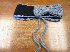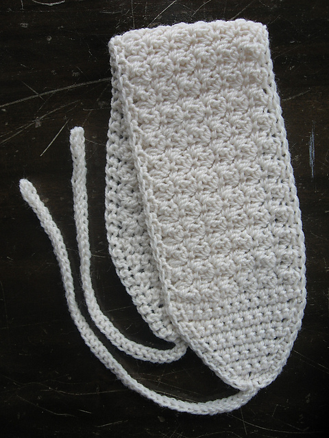 Some people have chosen to add a loop and button for a closure, and just omit the chains for the ties. Another great idea a lot of people have used is to crochet in an elastic ponytail holder in to the ends to keep it adjustable, but make it much easier than tying it (and probably catch less hair, too).