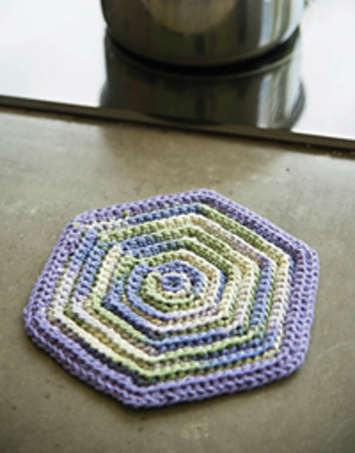 An old 1950s kitchen set pattern inspired this super-easy hot pad that’s worked in simple single crochet (US). Add a fun retro feel to your kitchen with this quick-and-easy project!