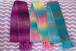 A simple scarf consisting of double crochets and chains. Perfect for a beginner - the yarn does all the color work for you!