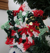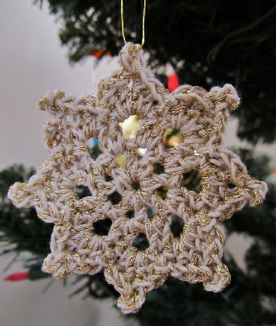 This pretty little Christmas ornament only takes 10-15 minutes and uses just a little bit of crochet cotton thread. I like to add in a strand of metallic filament for shine, but this star looks pretty with or without it. Have fun!