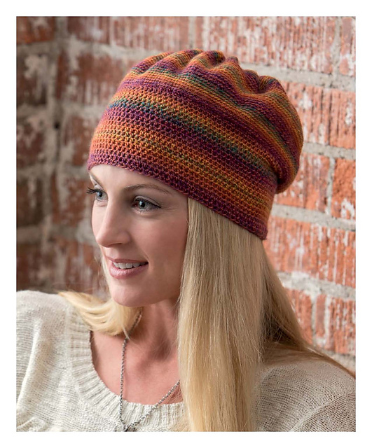 This hat is simple yet stylish, with a gathered fabric. There is a simple star motif on top of the crown, and after you make it, just work single crochet on the crown and half crochet on the brim. The fabric has some stretch to it, so it is comfortable to wear.